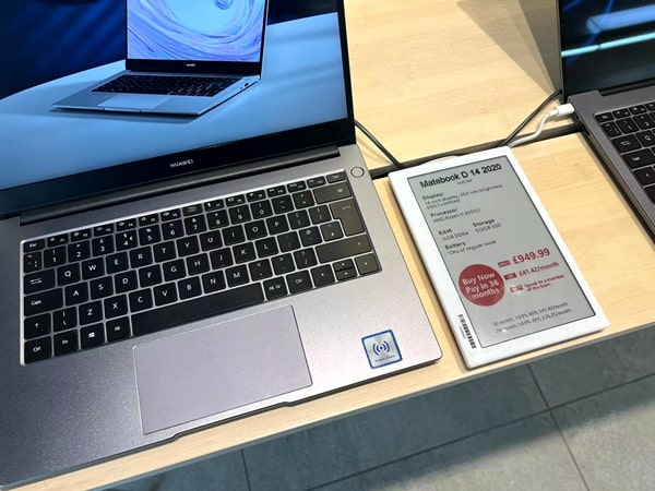 ESL-Etiketten von YalaTech, die in den Flagship-Stores von Huwei in Großbritannien verwendet werden