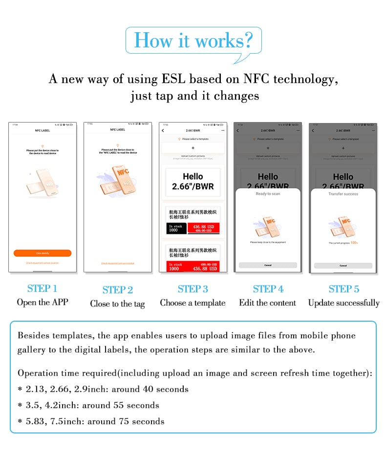 Dabei handelt es sich um ein digitales Etikett, das per Mobiltelefon-NFC aktualisiert werden kann. Es beschleunigt den Einzug von E-Paper-Bildschirmen in weitere Anwendungsszenarien, darunter Einzelhandel, Büro, öffentliche Räume usw.